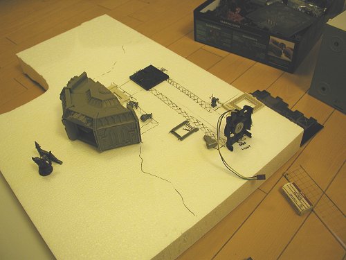 The space hulk terrain board was set up in the Dungeon loft room, and lights were slotted onto various areas of the board. Then all the corridor and room sections were covered over - players would only be able to see as far as the next corner or closed door!