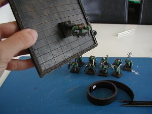 I also decided to pull the finished models off their regular plastic bases and pin them carefully to clear acrylic bases (from Aliceflux on ebay). It was rather a hassle, but well worth it when you see them on the high-resolution battlemat we'll be playing on....