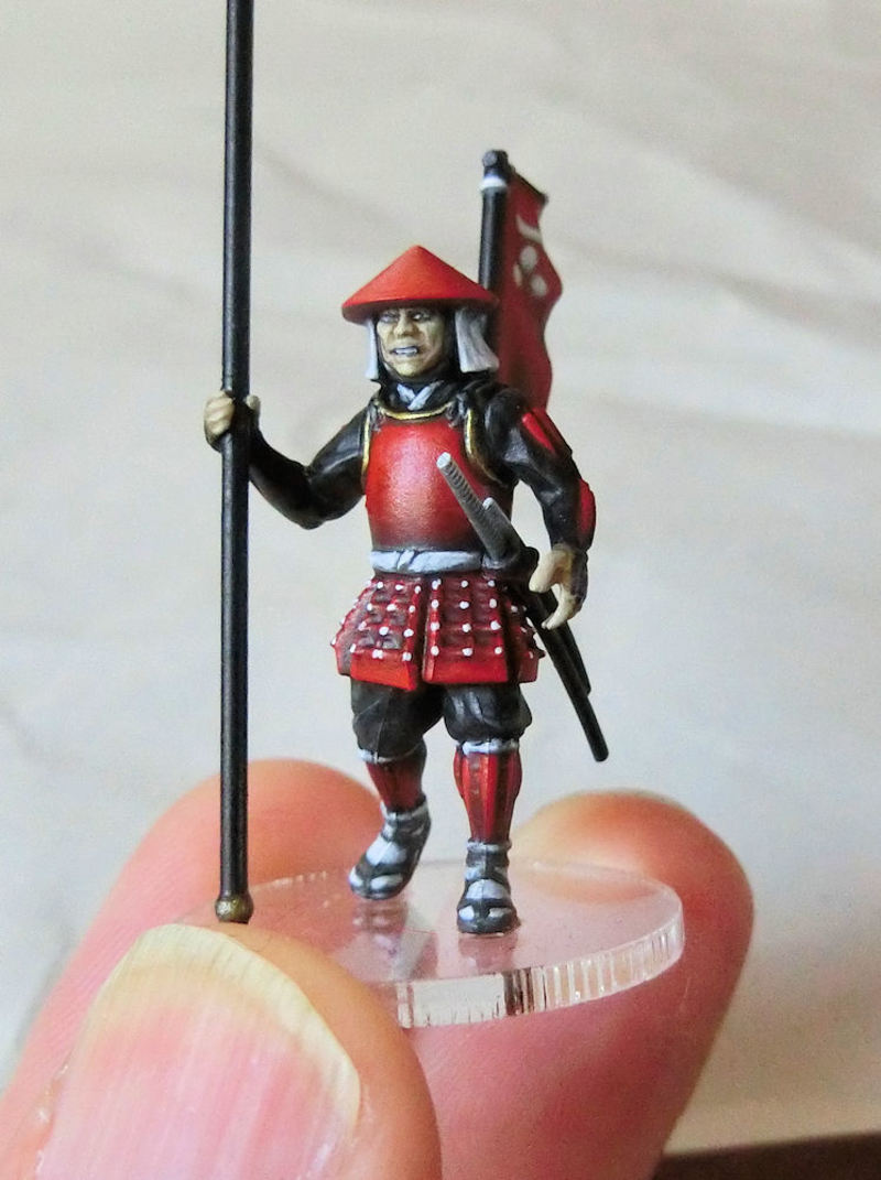 Despite using very sticky tape to atatch the blocks, I found the curved plastic kept peeling off. So I had to very carefully hammer in a tiny brass pin on each side of the shield. These were laid flat, and later painted to match the design colours.